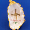 A hand-decorated gilded edge Oyster shell hanging ornament.