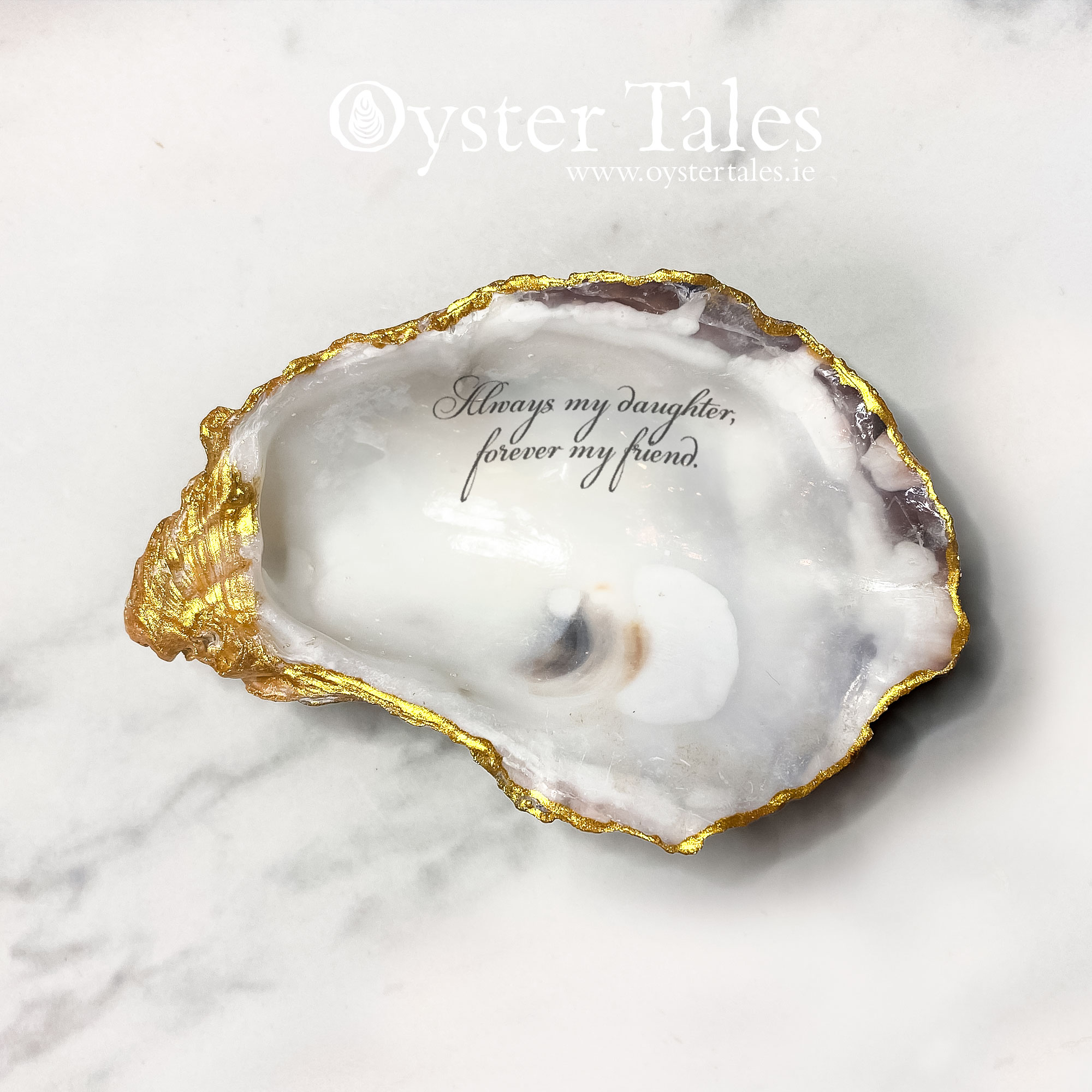 Celebrate the special bond you share with someone you love through this beautifully handcrafted oyster shell ring and trinket box. Made from a genuine oyster shell sourced along Ireland’s Wild Atlantic Way, each piece is naturally formed by the sea, making every box completely unique in shape, texture, and character.