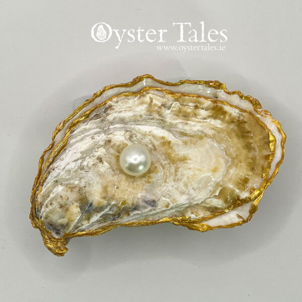 These are wild, natural oyster shells gathered from the west coast of Ireland, and each one varies in size, shape, and natural markings. The average shell measures approximately 2″ × 3″, though some may be slightly shorter or taller, wider or narrower. As each piece is individually decorated by hand, the artwork will also vary, making every trinket dish truly unique. Any embellishments on the shell may change in design from time to time.